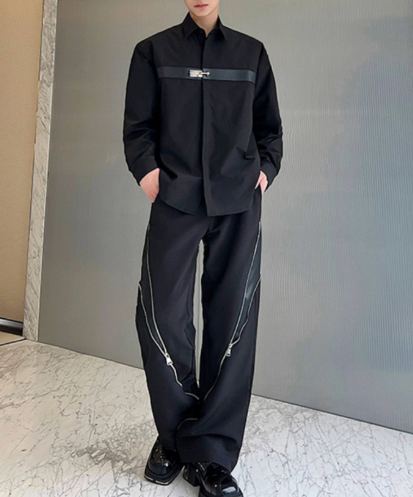 【style88】dark mode outfit set EN2679(shirt + pants + boots + ring set)