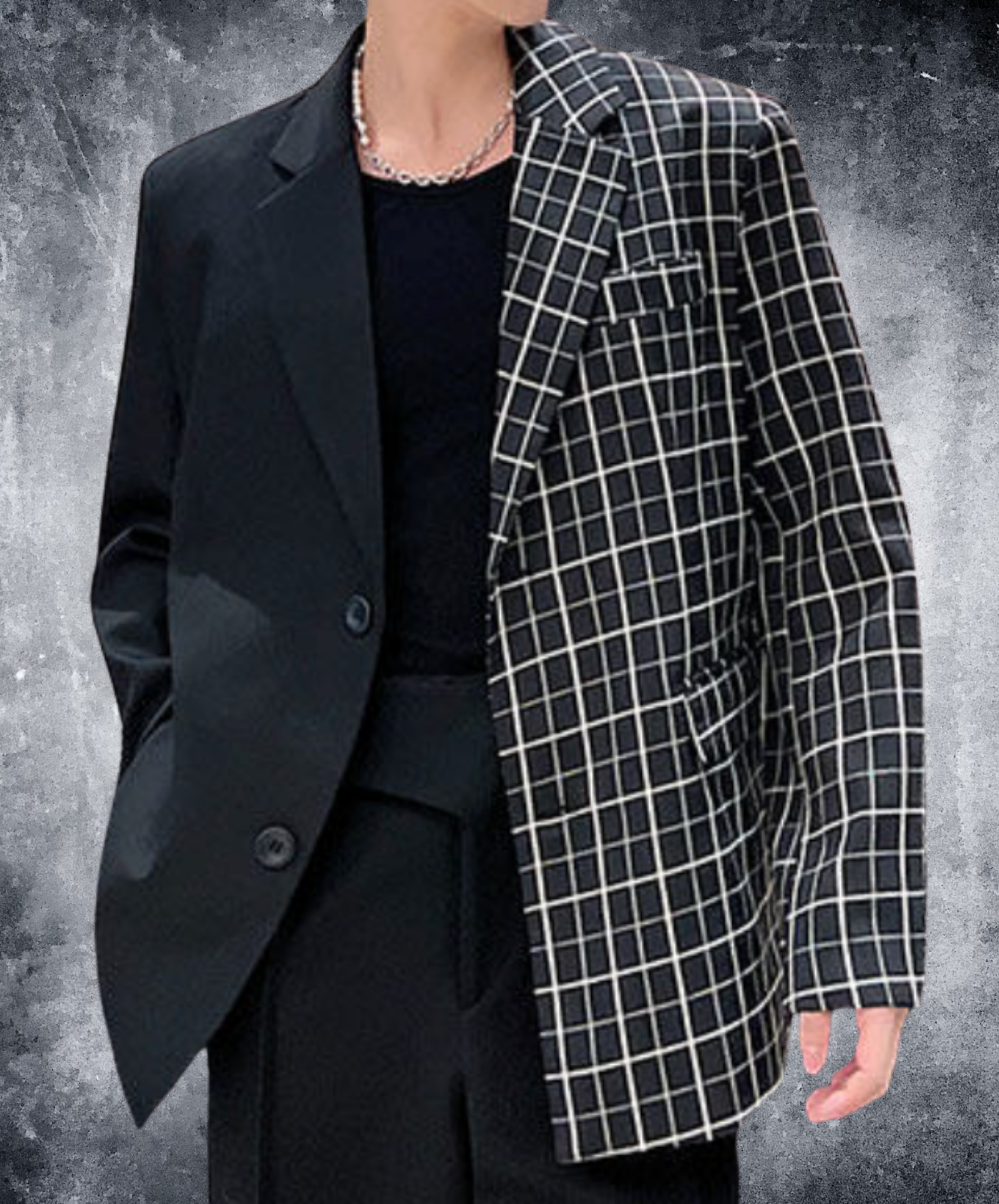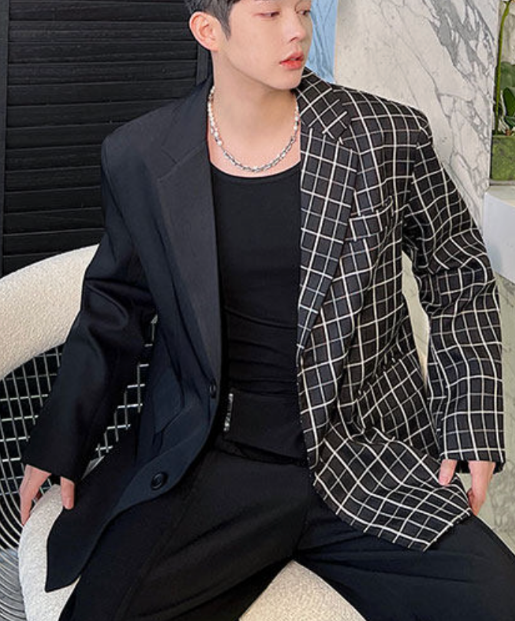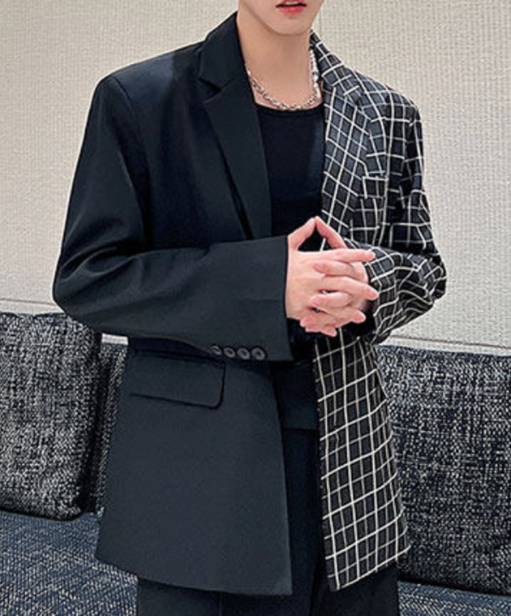 ・片方を無地にすることで派手さを感じさせないスタイリッシュな一着。