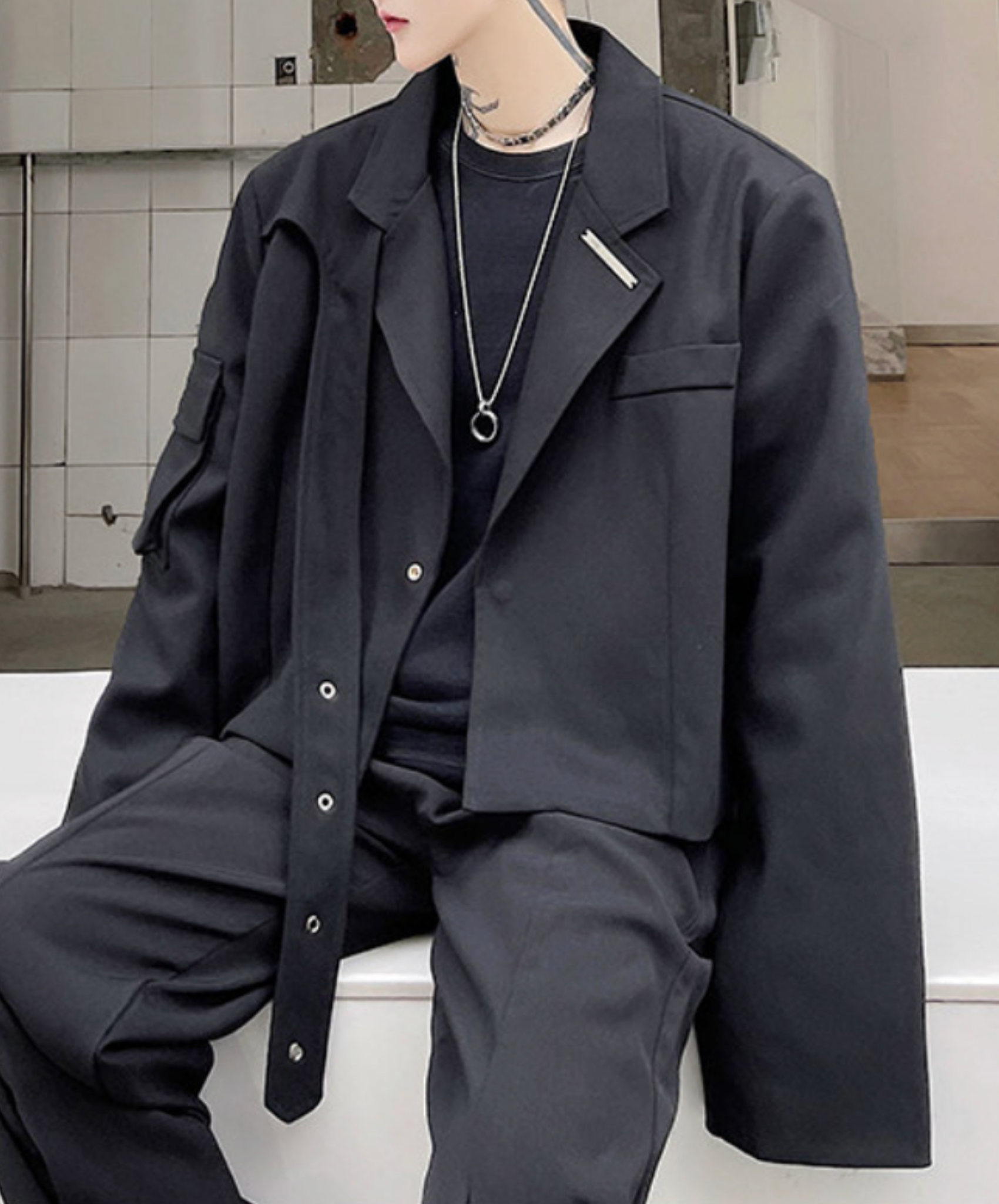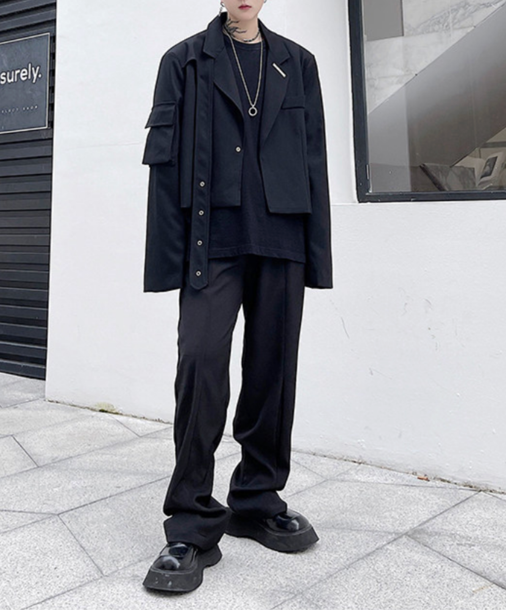 【style60】dark mode outfit set EN1863(jacket + shirt + pants set)