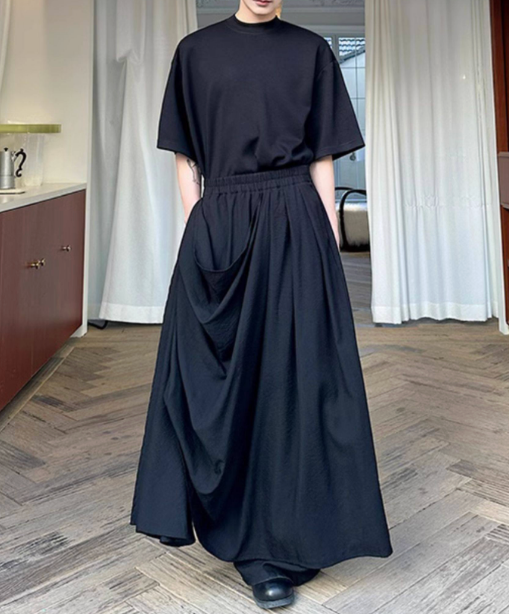 dark draped double skirt pants EN2691