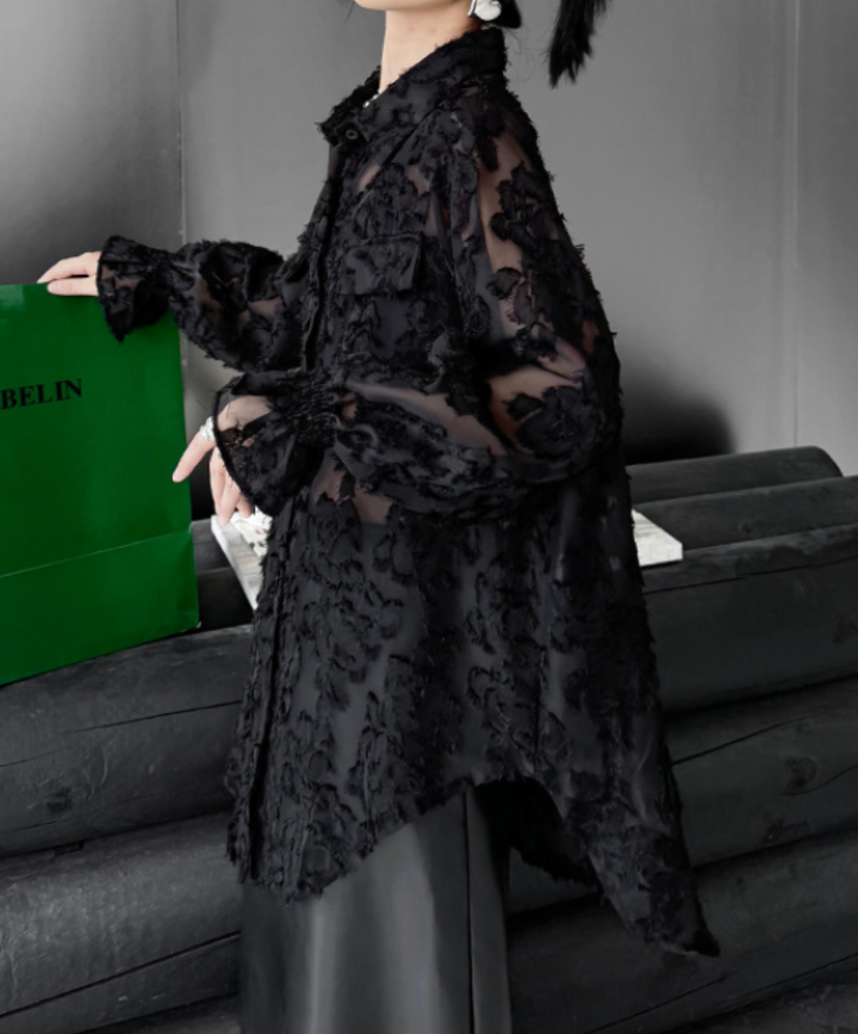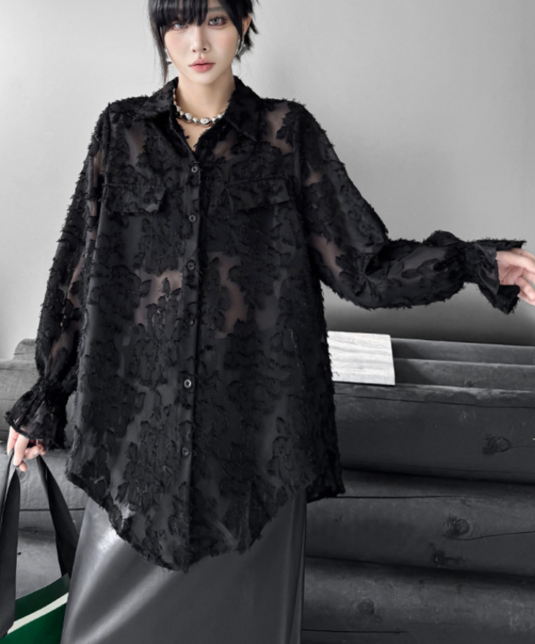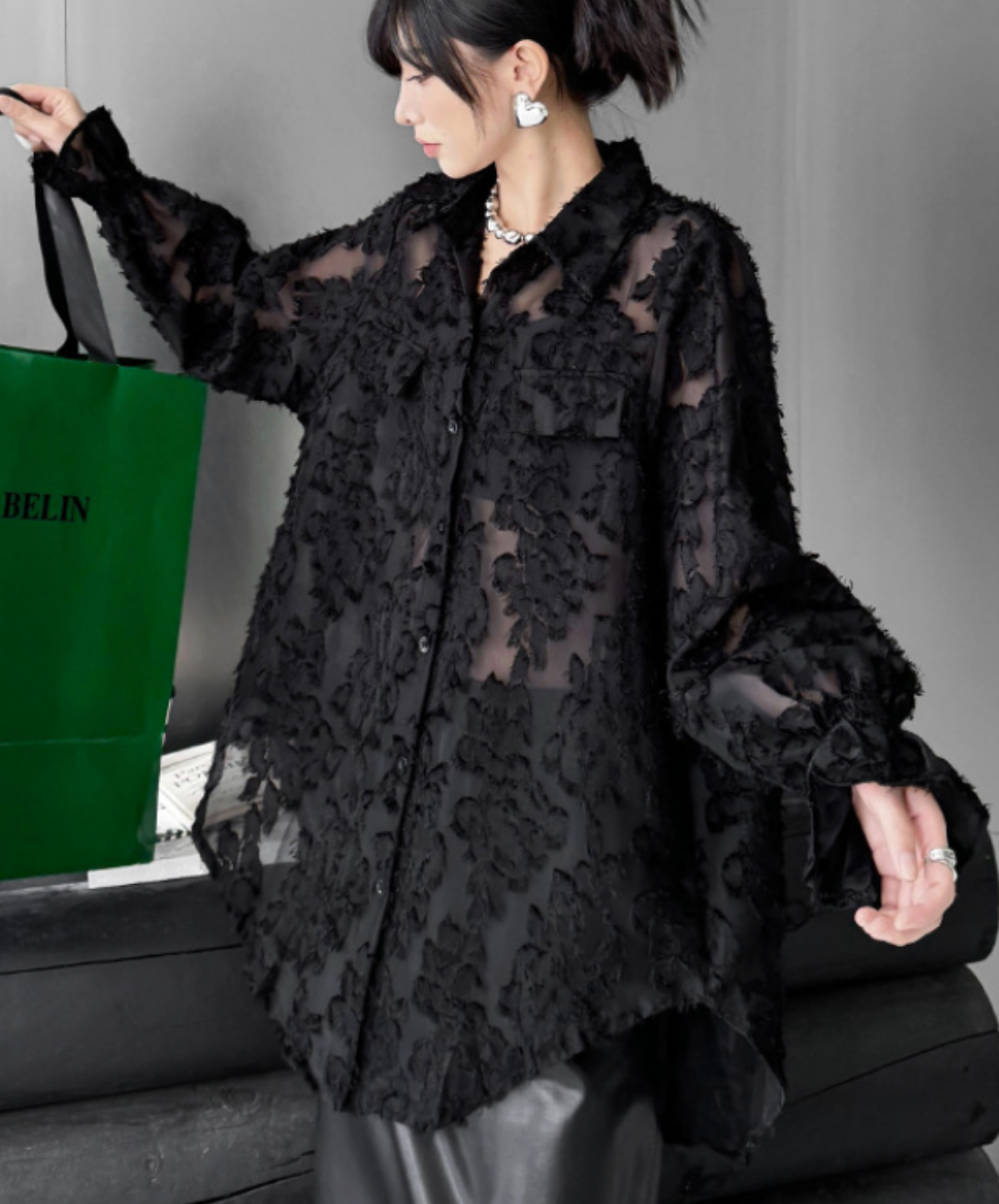 ・立体フラワー刺繍のラグジュアリーなシアーシャツ。