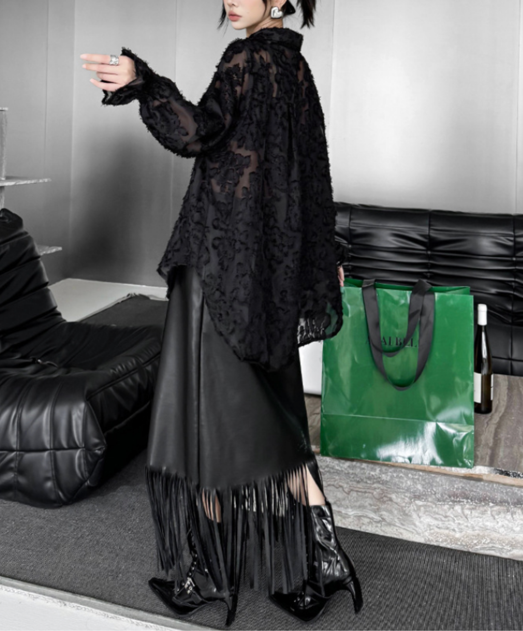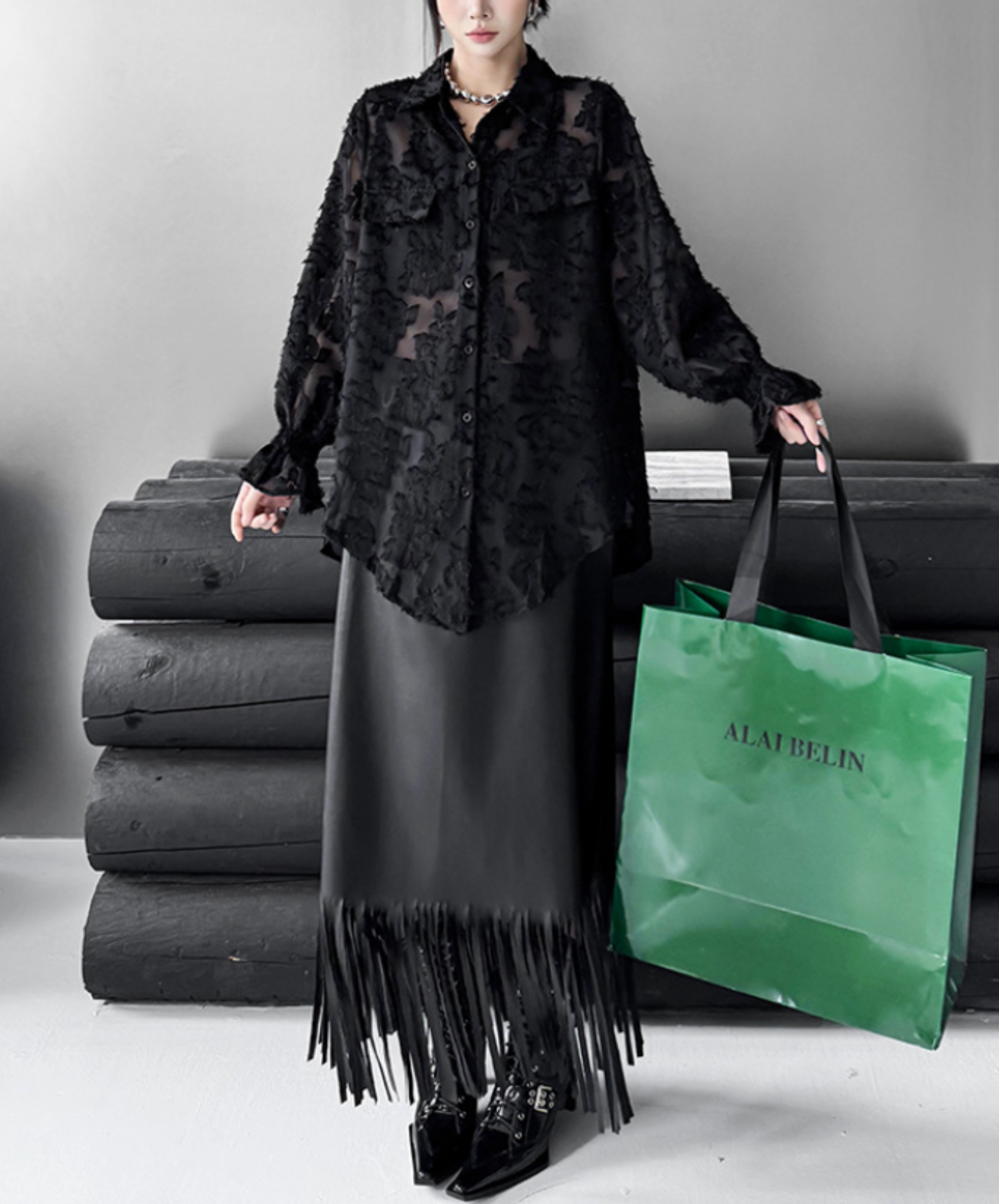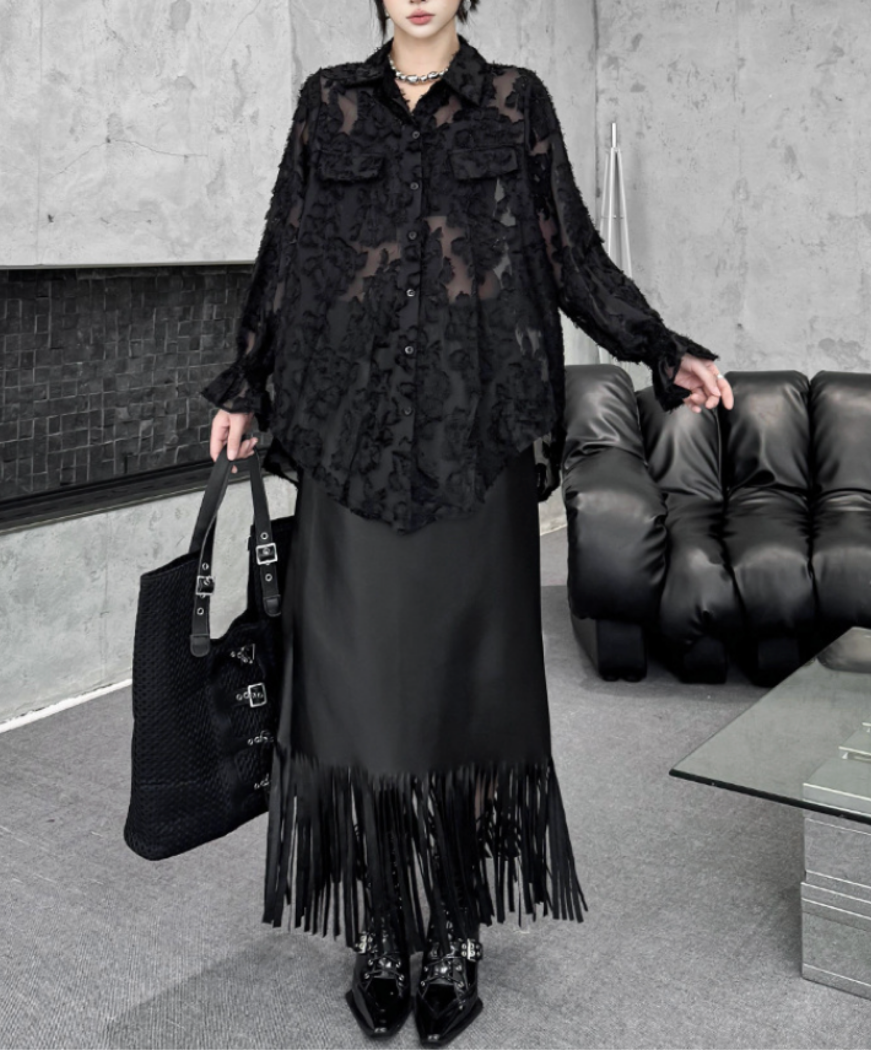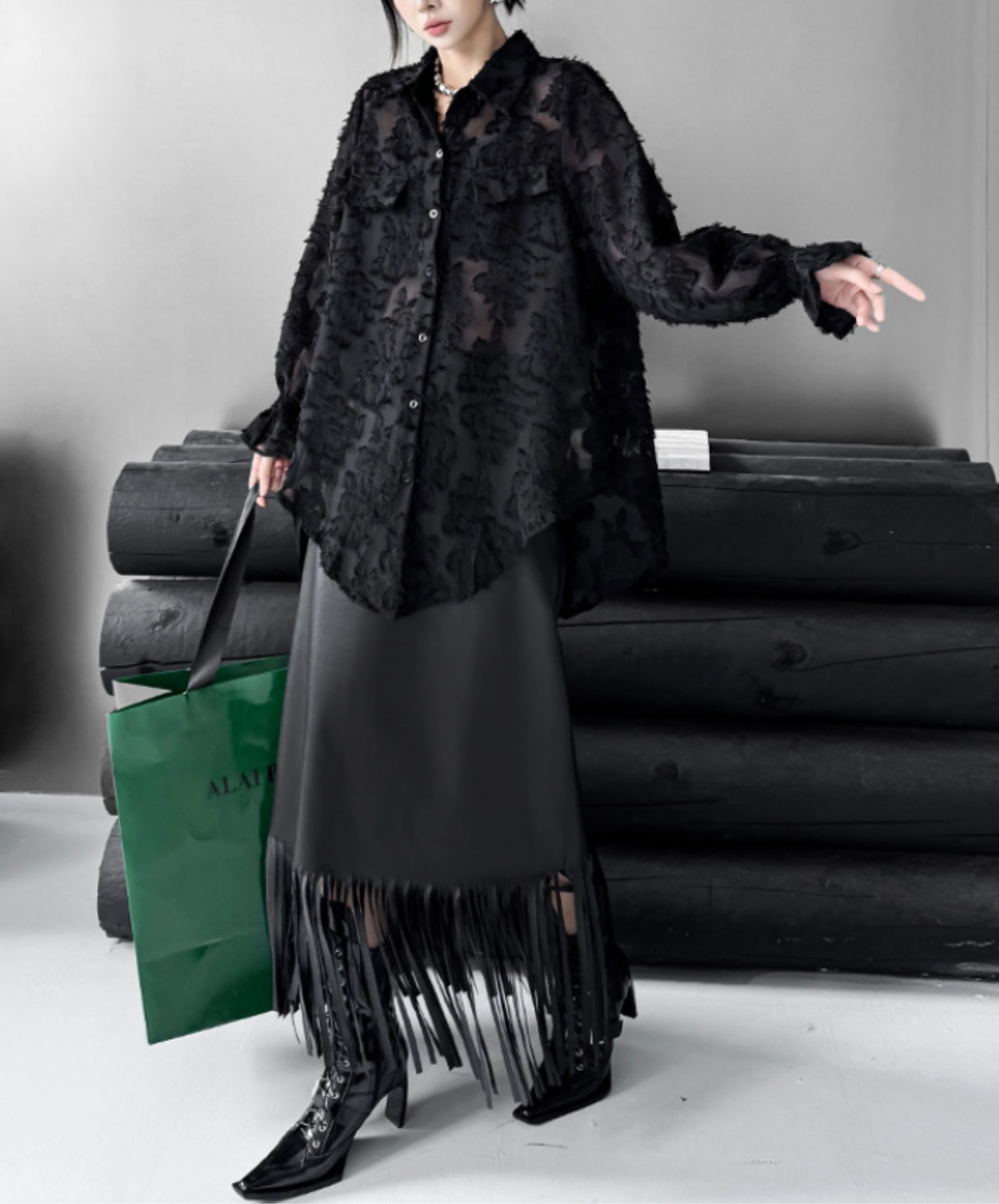 ・立体フラワー刺繍のラグジュアリーなシアーシャツ。