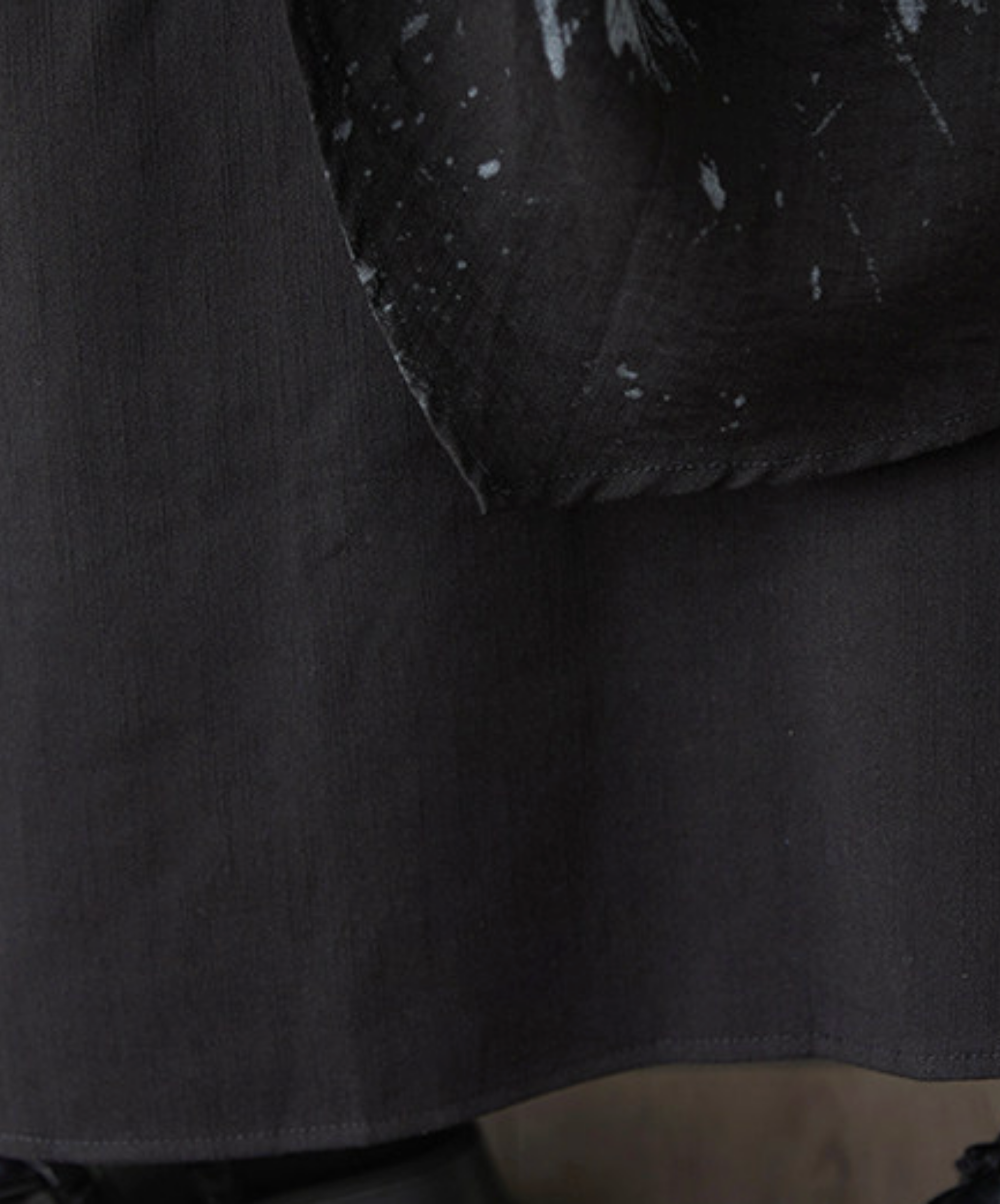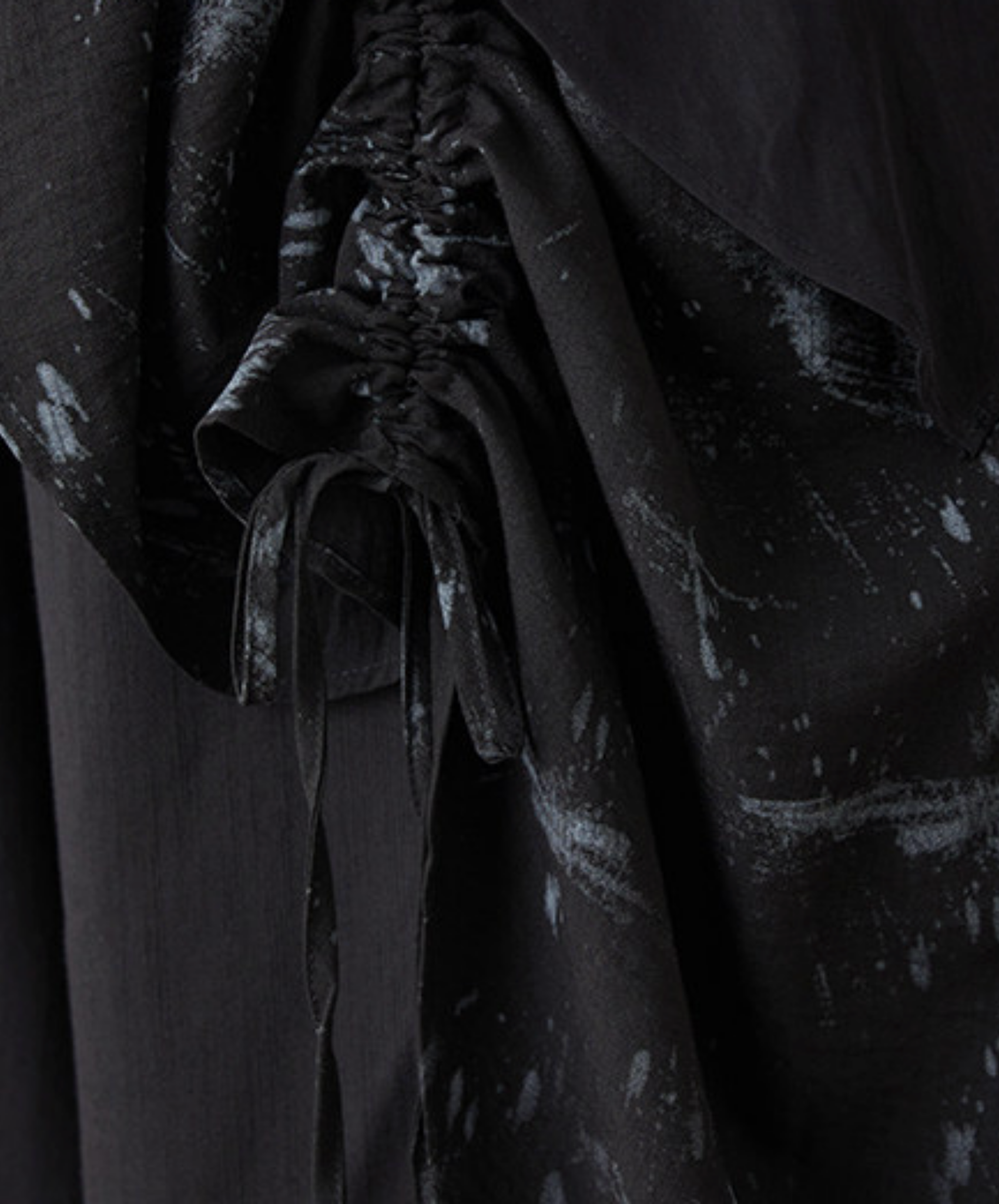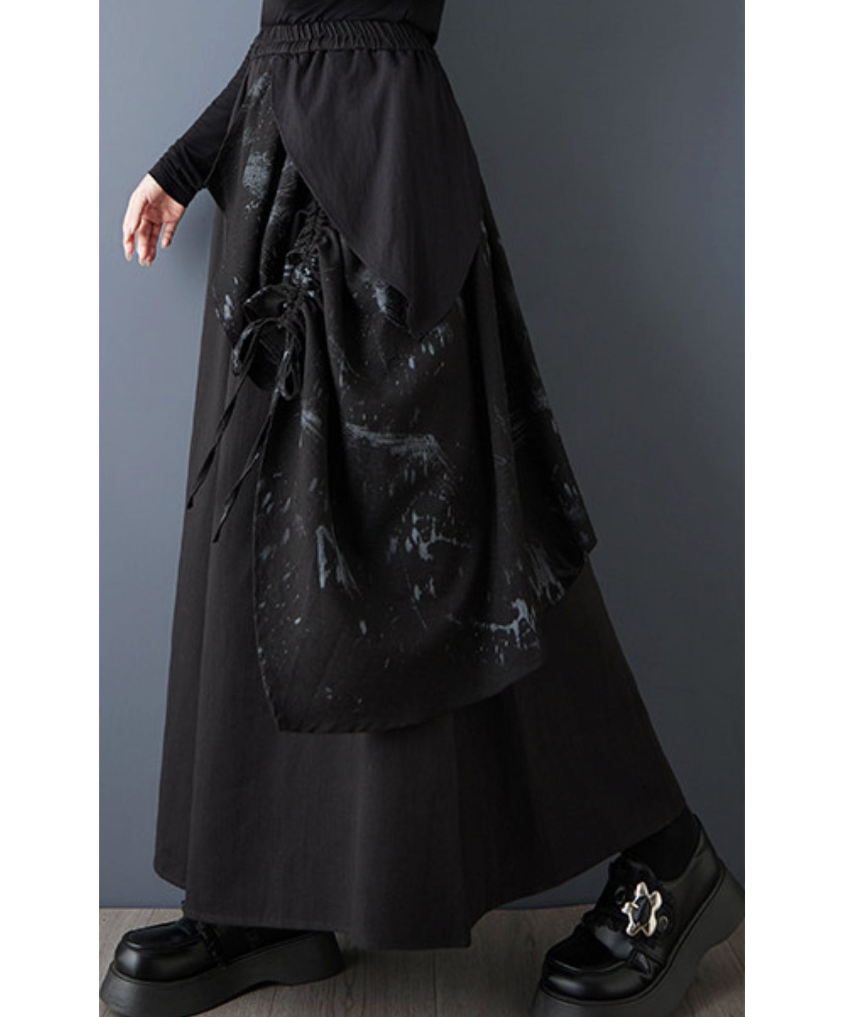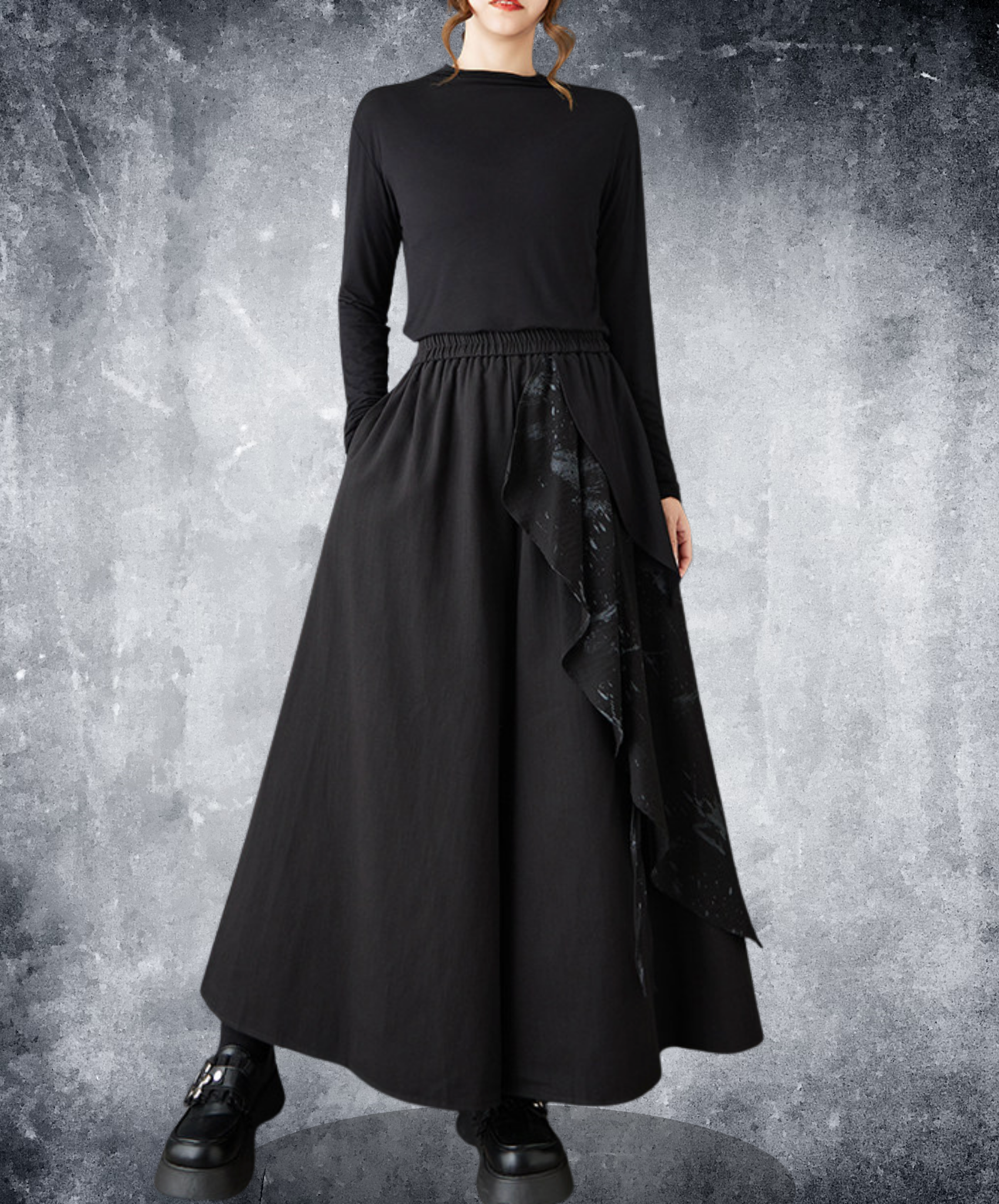 ・無地とプリント生地を組み合わせたドラマティックなワイドパンツ。