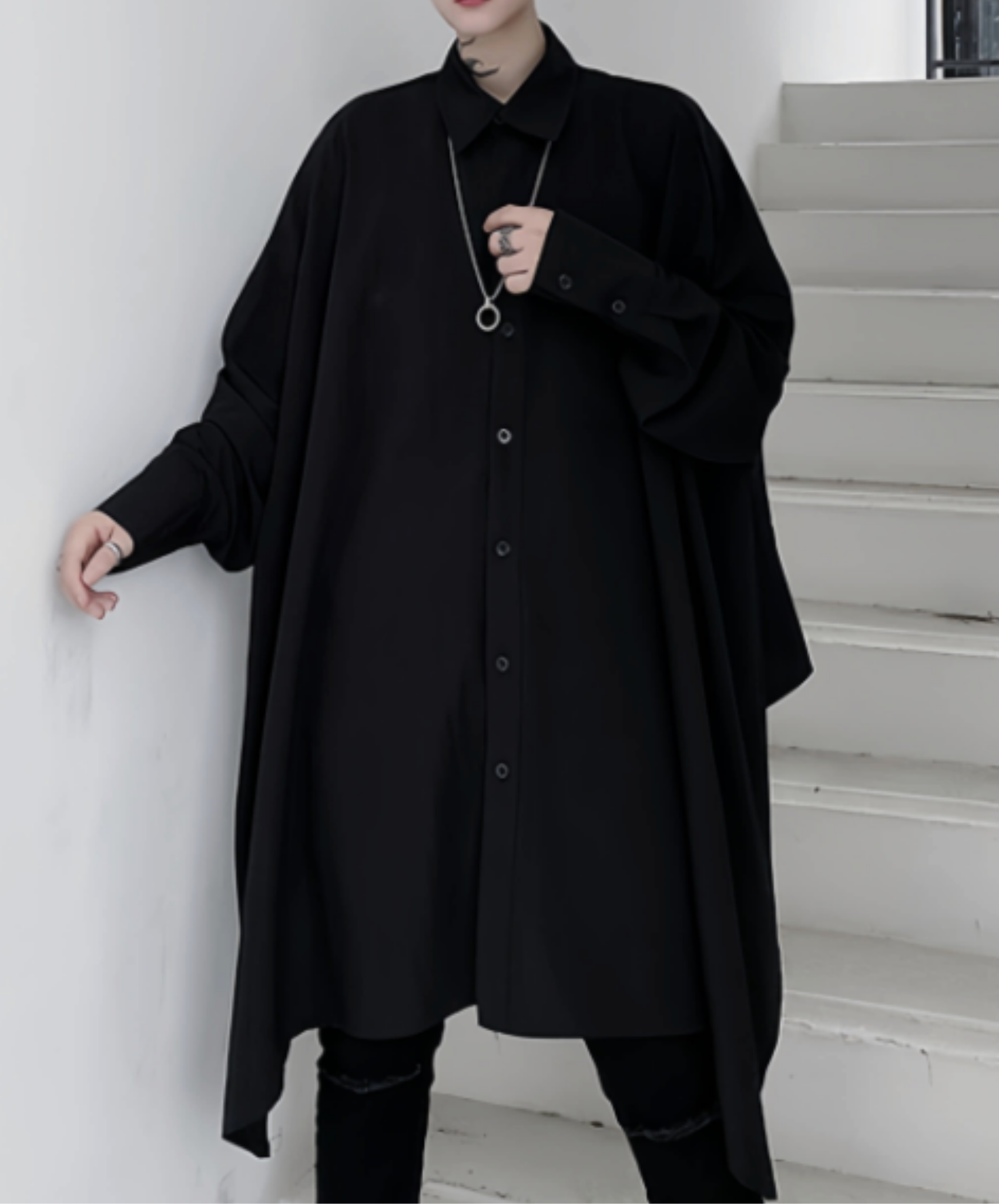 dark asymmetrical big silhouette long shirt EN2749