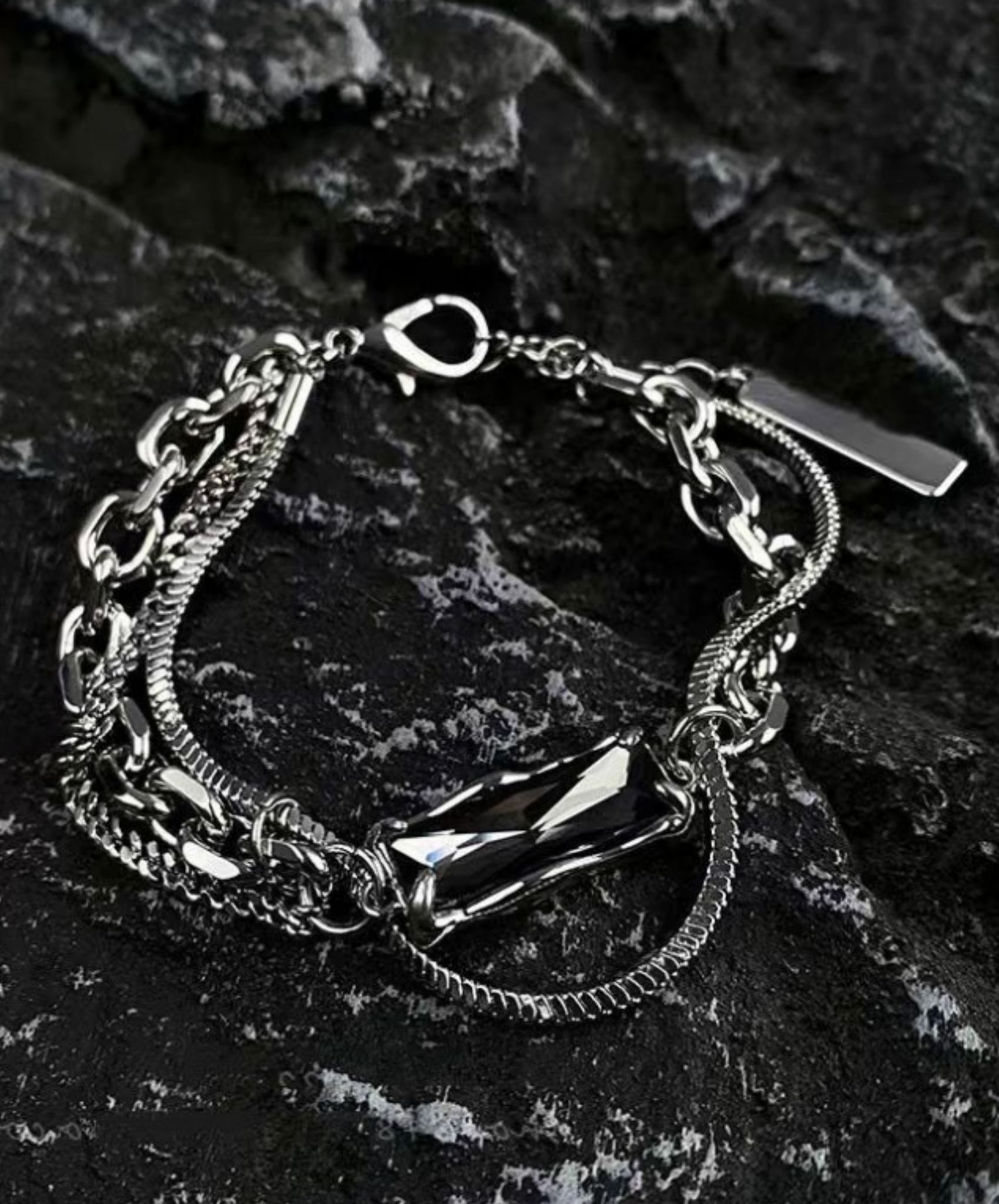 three types of chains with stones bracelet EN2758