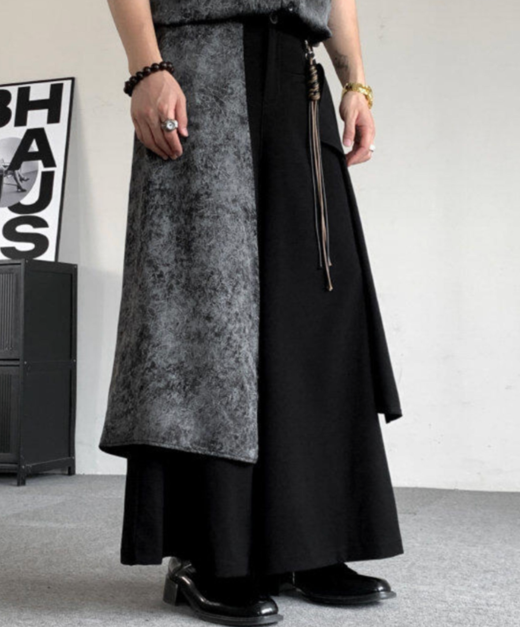 ・美しい布装飾が視線を集める袴ワイドパンツ。