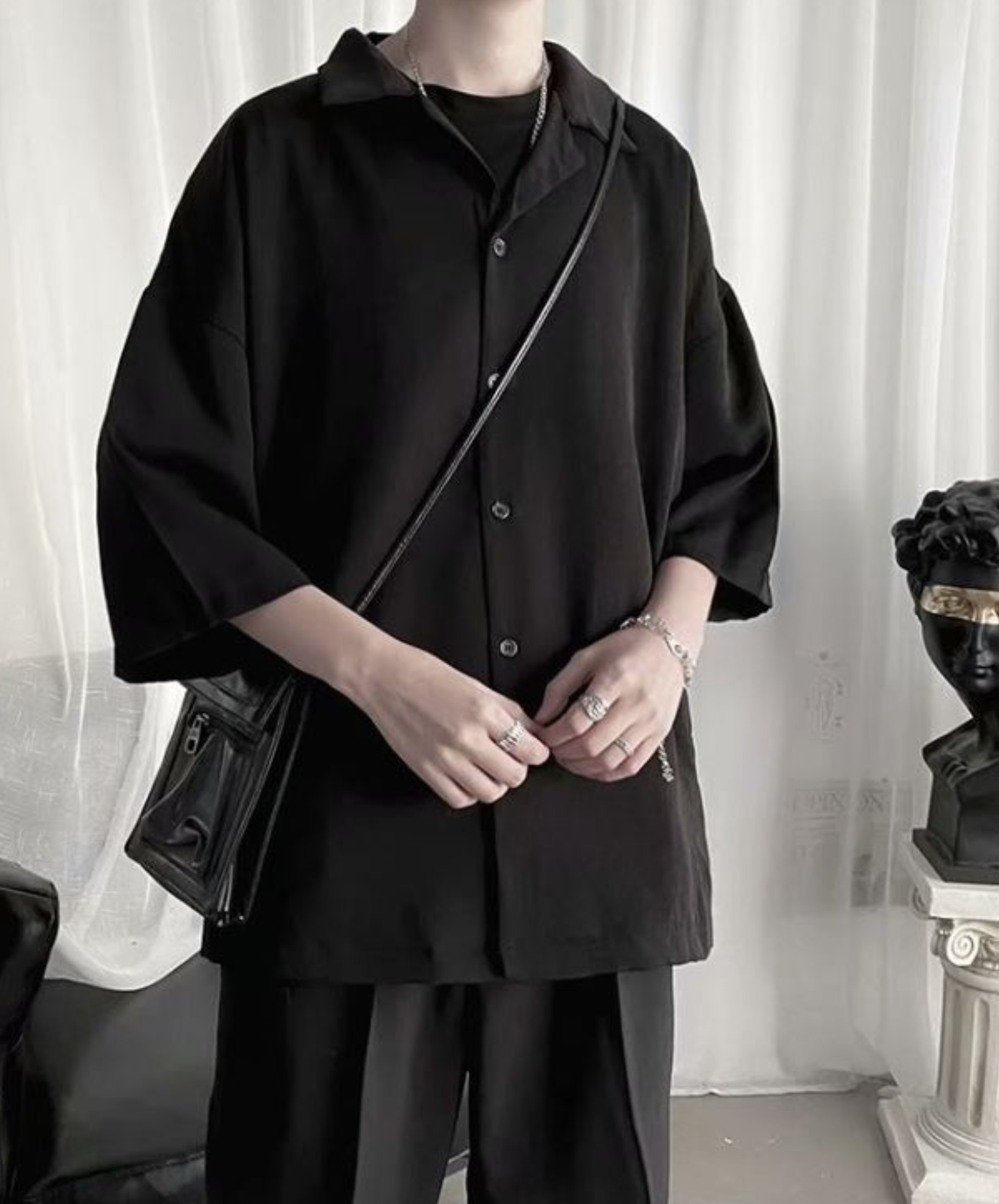・ゆったりとしたルーズなシルエットが魅力の七分袖シャツ。