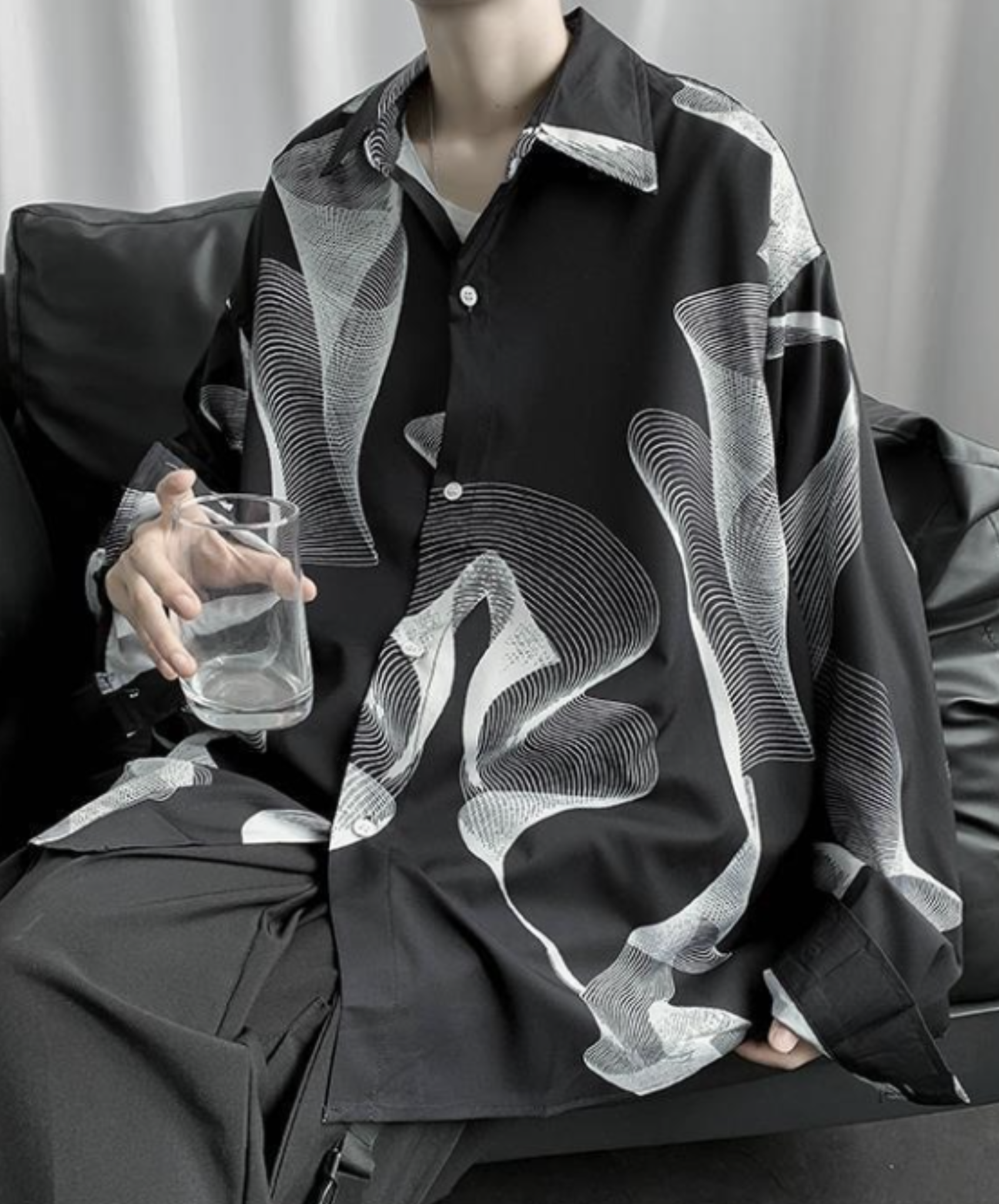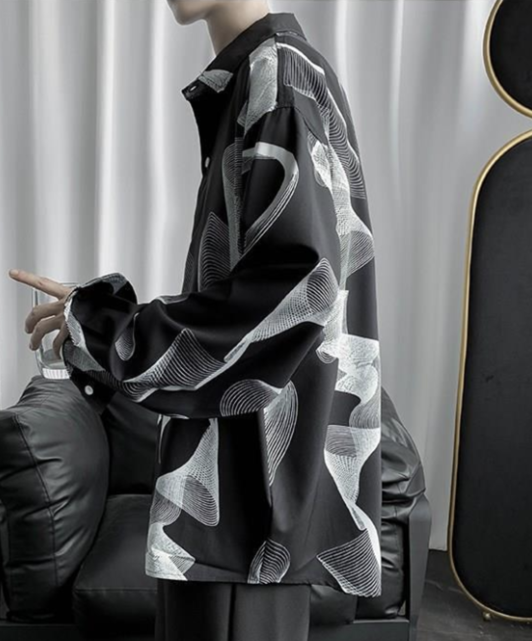 ・クールな雰囲気のアート柄デザインが特徴的なシャツ。